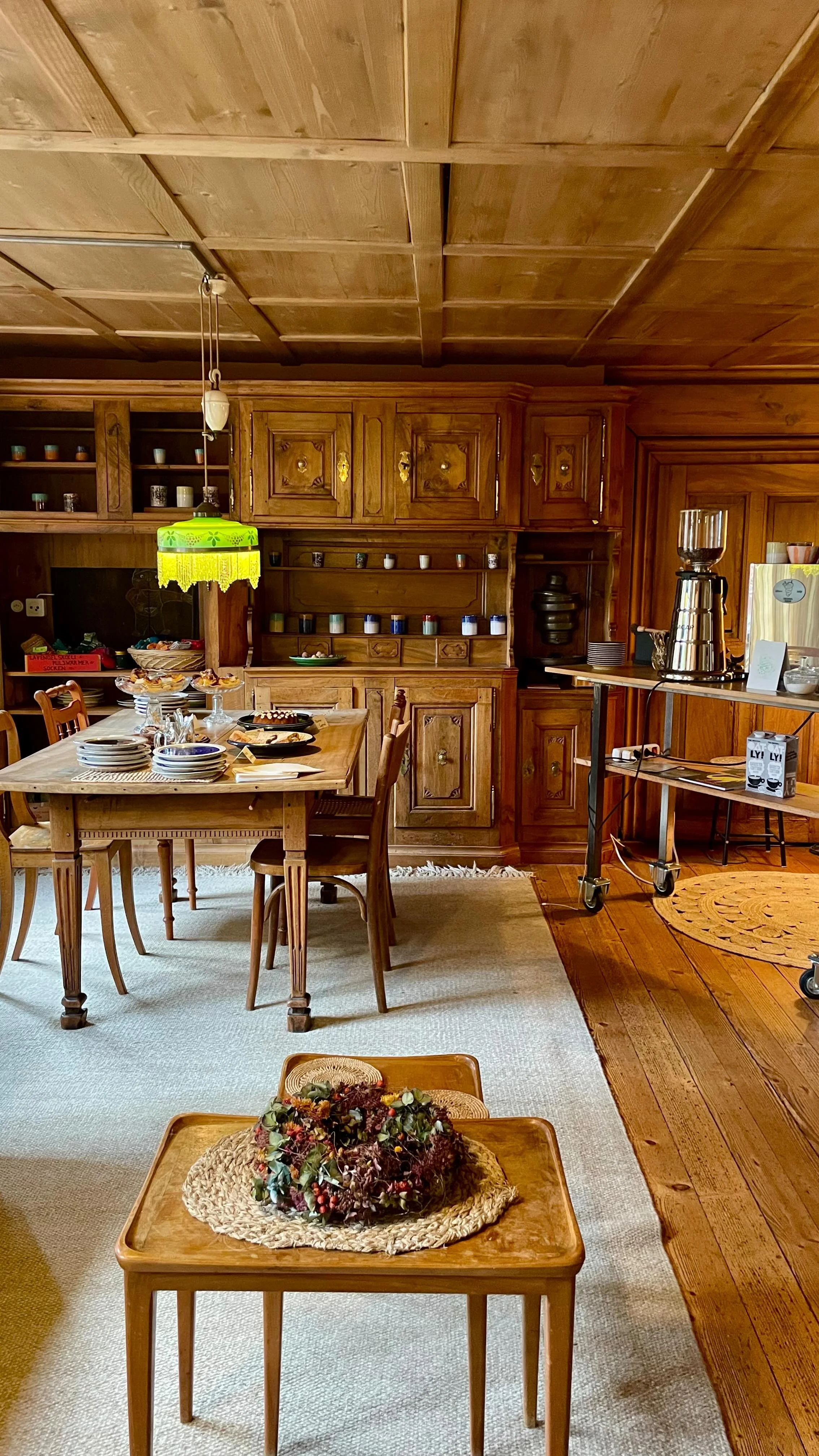 In der alten Stube knistert der Ofen, am langen Holztisch wird Kaffee getrunken, Stimmen mischen sich mit Lachen.