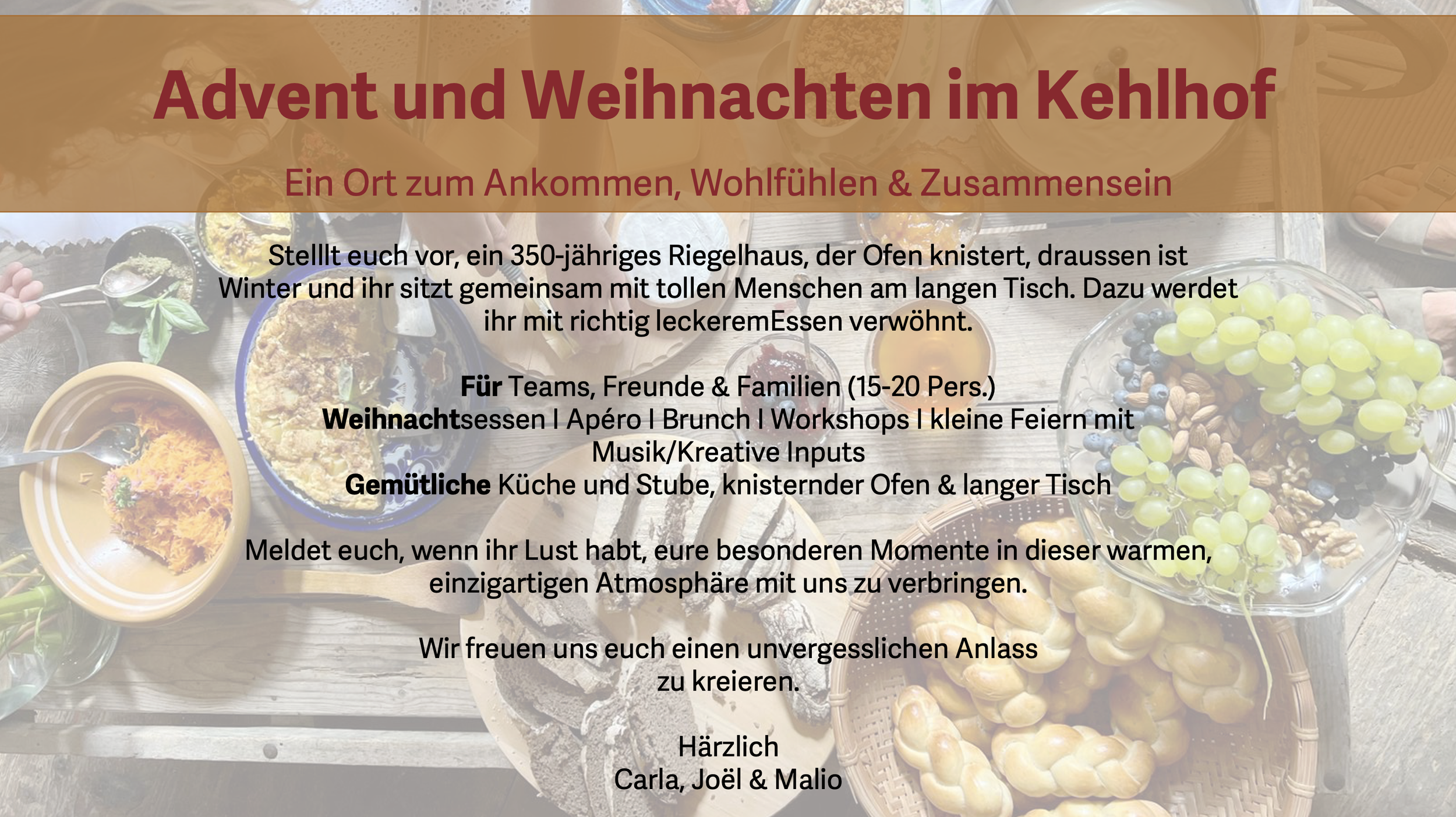 Im November und Dezember wird der Kehlhof zum warmen Treffpunkt mitten in der Winterzeit, mit Kerzenziehen, kleinen Werkstätten, feinem Gebäck und Zeit für echte Begegnungen.